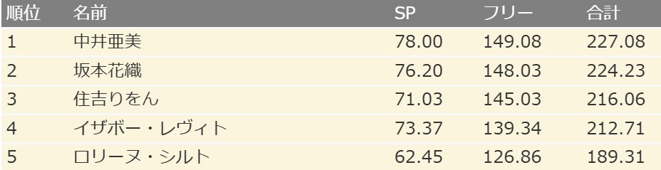個人ベスト合計スコア      :227.08 2025年10月18日 ISU GP フランスグランプリ 2025